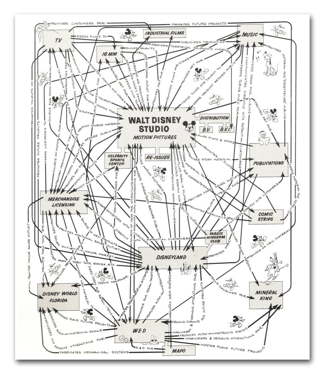 MasterClass: after enjoying Bob Iger’s masterclass on business strategy and leadership, we rediscovered this diagram created by Walt Disney back in 1967.